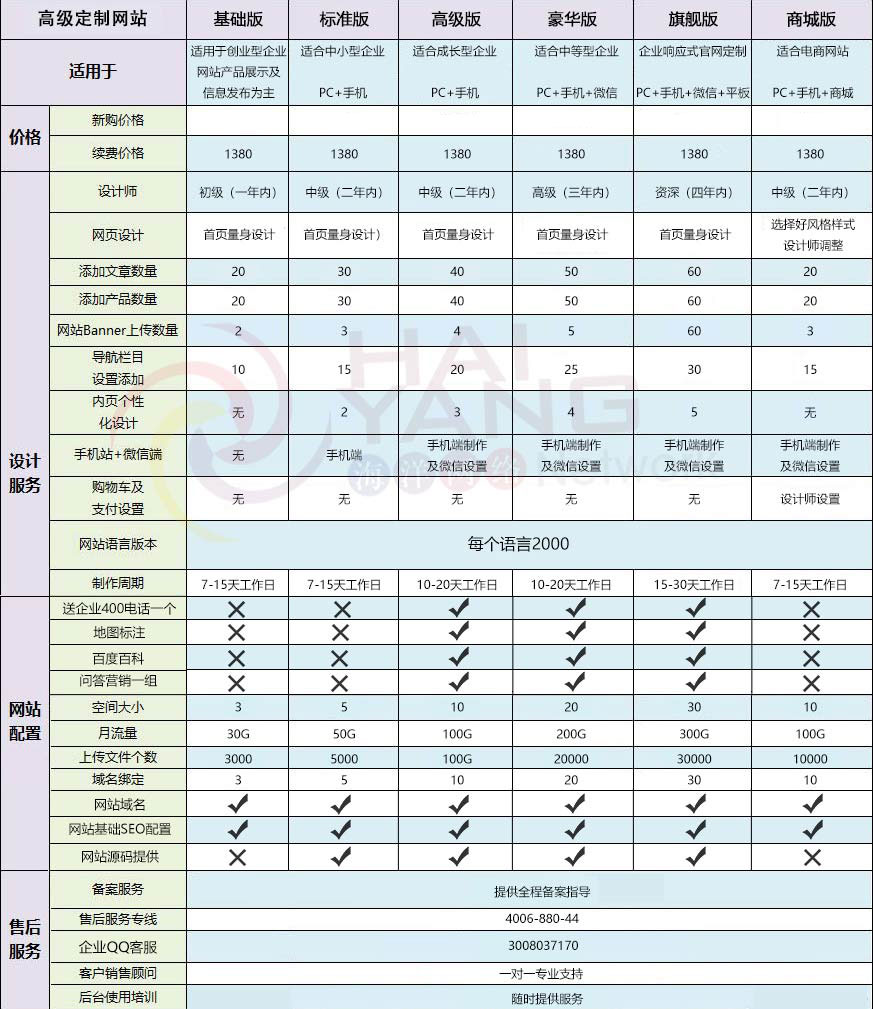 定制網站開發 套餐