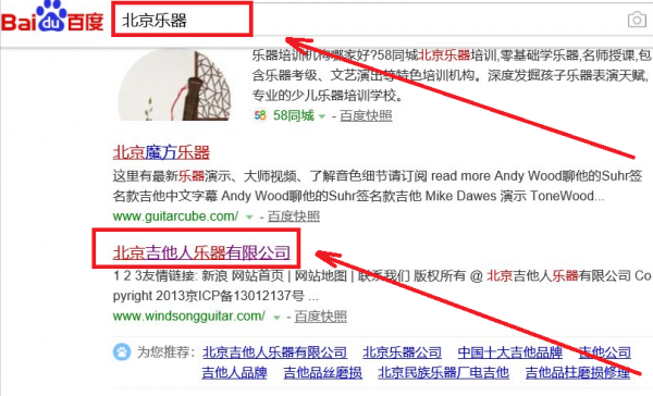 北京吉他人樂(lè)器有限公司選用我司企業(yè)樂(lè)器的網(wǎng)站優(yōu)化產(chǎn)品,其SEO關(guān)鍵詞有樂(lè)器、樂(lè)器配件。按天計(jì)費(fèi),最快7天上詞,不到首頁(yè)不扣費(fèi)。關(guān)鍵詞質(zhì)量保證,白帽SEO符合百度算法,360、搜狗、移動(dòng)端等排名效果免費(fèi)贈(zèng)送。北京吉他人樂(lè)器有限公司成立于2013年,是經(jīng)北京市市場(chǎng)監(jiān)督管理局審核的有資質(zhì)的公司,其統(tǒng)一社會(huì)信用代碼:91110114076594642C。公司地址:北京市昌平區(qū)回龍觀鎮(zhèn)建材城西路87號(hào)院4號(hào)樓2層202室。