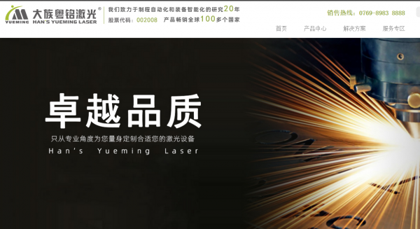 廣東大族粵*激光集團股份有限公司是大族激光科技產業集團股份有限公司旗下的國家重點高新技術企業集團(股票簡稱:大族激光,股票代碼:002008)。公司位于廣東省松山湖國家高新技術產業開發區,專業從事各類高端工業激光設備的研發、制造、銷售與維護。公司在東莞、上海、徐州、蘇州等地擁有占地11萬平方米的現代化生產基地、100余臺(套)德國進口精密機械加工設備以及600多名高素質的員工,產品暢銷全球100多個國家和地區,年產銷各種工業激光設備超過10000臺(套)。