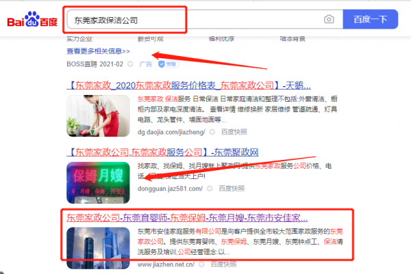 我們公司與東莞市*新物業管理有限公司合作中,對這個公司所經營的家政保潔這個行業提供了整站優化,與該公司的合作,更多的客戶讓我們公司為其提供關鍵詞搜索排名,通過每一次合作,我們公司不斷完善自己,同時希望合作伙伴在經營的路上越來越好。