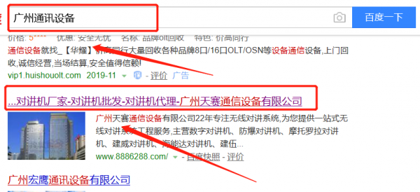 我們公司與廣州天賽通信設(shè)備有限公司合作中,對這個公司所經(jīng)營的通訊設(shè)備這個行業(yè)提供了快速排名,與該公司的合作,更多的客戶讓我們公司為其提供快速排名,通過每一次合作,我們公司不斷完善自己,同時希望合作伙伴在經(jīng)營的路上越來越好。