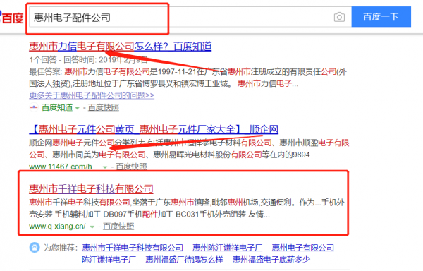 我們公司與惠州市千祥電子科技有限公司合作中,對這個公司所經營的電子配件這個行業提供了百度快照排名,與該公司的合作,更多的客戶讓我們公司為其提供搜索引擎優化推廣,通過每一次合作,我們公司不斷完善自己,同時希望合作伙伴在經營的路上越來越好。