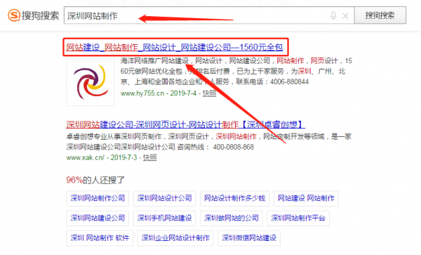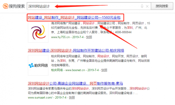 海洋網絡在搜狗中網站建設位于第一位