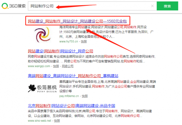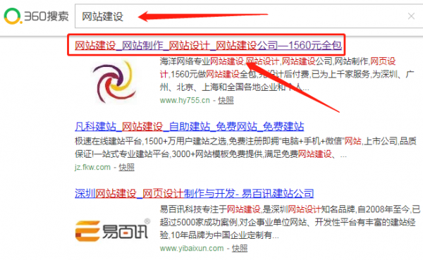 海洋網(wǎng)絡在360搜索引擎中網(wǎng)站建設排名第一位