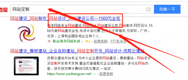 海洋網(wǎng)絡(luò)在百度網(wǎng)站定制關(guān)鍵詞中排位第一