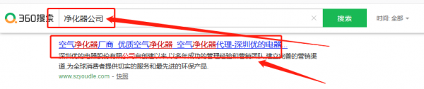 我們公司與 深圳優*電器股份有限公司合作中,對這個公司所經營的凈化器這個行業的SEO推廣積累了豐富的經驗;同時在該行業的(SEO優化、SEO推廣,百度快照排名,搜索引擎優化推廣,快速排名,關鍵詞搜索排名,SEO網站優化,網站建設制作設計)等多元化的領域中也有很多的成功的案例;但愿通過我們的合作,能夠幫助到合作伙伴在同行業中遙遙領先