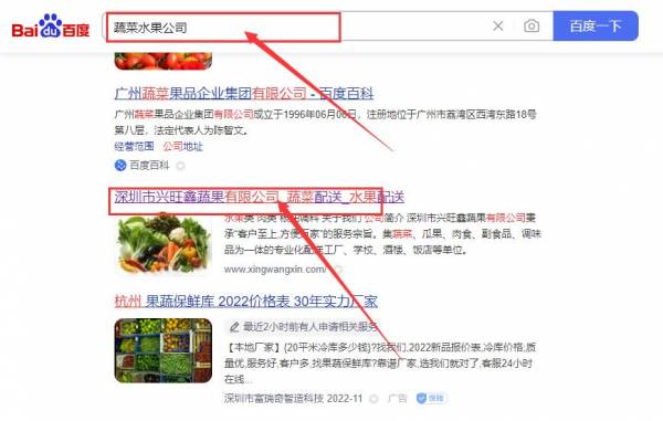 深圳市興*鑫蔬果有限公司網(wǎng)站優(yōu)化最快上詞效果展示