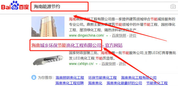我們公司與海南城鄉環保節能亮化工程有限公司合作中,對這個公司所經營的能源節約這個行業提供了快速排名,與該公司的合作,更多的客戶讓我們公司為其提供快速排名,通過每一次合作,我們公司不斷完善自己,同時希望合作伙伴在經營的路上越來越好。