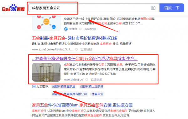 我們公司與成都林*偉業家俬有限責任公司合作中,對這個公司所經營的家居五金這個行業提供了關鍵詞推廣,與該公司的合作,更多的客戶讓我們公司為其提供網站建設制作設計,通過每一次合作,我們公司不斷完善自己,同時希望合作伙伴在經營的路上越來越好。