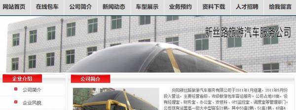 慶陽新*路旅游汽車服務有限公司于2011年1月組建,2011年5月份投入營運,主要經營省級、市級旅游包車客運服務。公司占地10畝,設有經理室、財務室、辦公室、安技科、GPS監控室、調度室等管理部門。