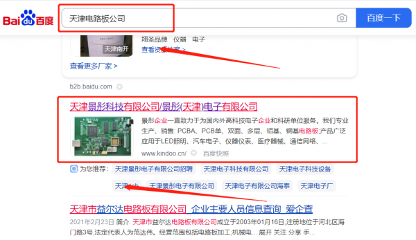 我們公司與景*(天津)電子有限公司合作中,對這個公司所經營的電路板這個行業提供了網站排名,與該公司的合作,更多的客戶讓我們公司為其提供SEO網站優化,通過每一次合作,我們公司不斷完善自己,同時希望合作伙伴在經營的路上越來越好。