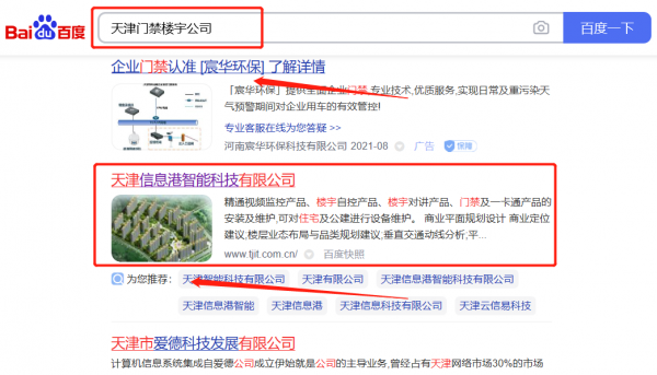 天津信*港智能科技有限公司百度關鍵詞排名保證在首頁效果