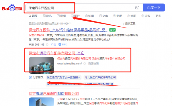 保定市通*汽車配件有限公司萬詞霸屏排名案例欣賞