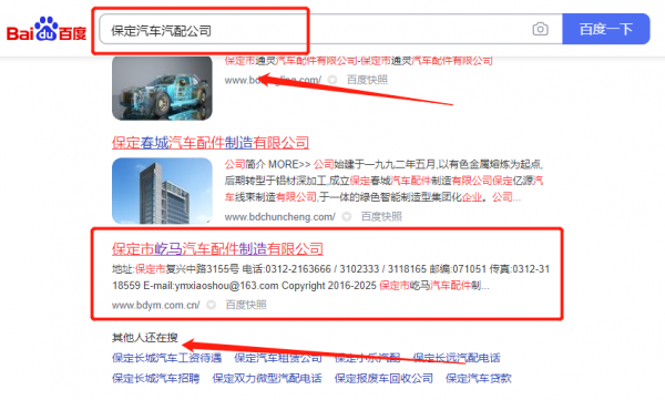 保定市*馬汽車配件制造有限公司萬詞霸屏排名效果展示