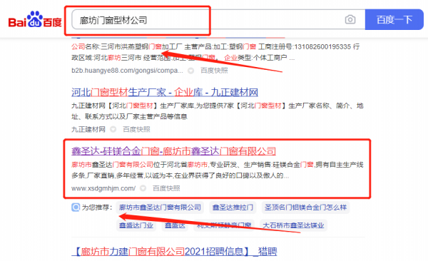 廊坊市*圣達門窗有限公司網站推廣排名效果展示