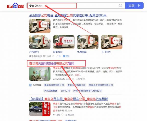 秦皇島天*科技股份有限公司網站優化排名效果展示