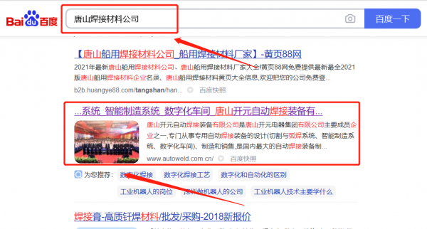 唐山*元自動焊接裝備有限公司選用我司企業焊接材料行業的網站優化產品,其SEO關鍵詞有焊接材料。覆蓋國內幾大主流搜搜引擎,占領電腦端、手機端,24小時快速獲取關鍵詞排名,搶奪流量。唐山*元自動焊接裝備有限公司成立于1993年,是經唐山市市場監督管理局審核的有資質的公司,其統一社會信用代碼:911302937**420041F。公司地址:河北省唐山市高新技術開發區高新西道168號。
