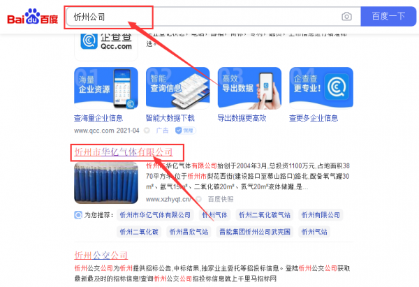 忻州市華*氣體有限公司網站優化最快上詞效果展示