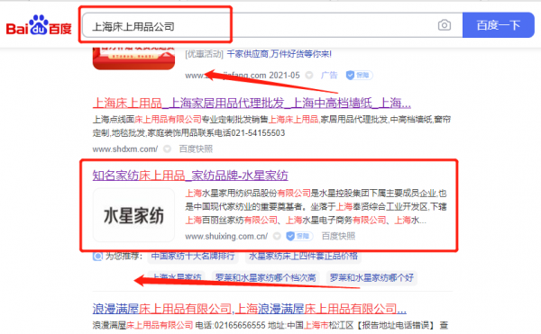 上海水*家用紡織品股份有限公司SEO排名案例欣賞