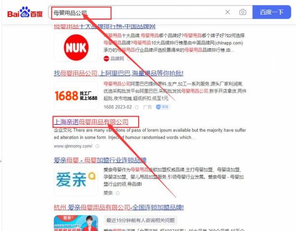 上海親*母嬰用品有限公司百度關鍵詞排名策劃優質品牌