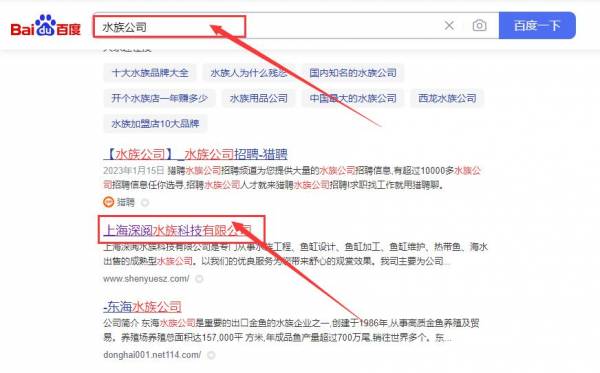 上海深*水族科技有限公司網站排名案例欣賞