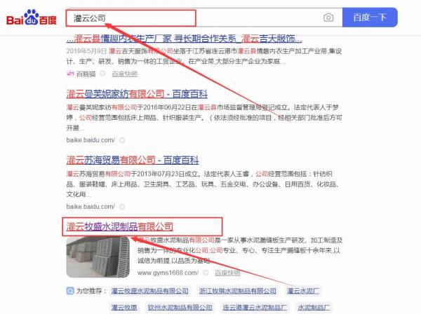 灌云*盛水泥制品有限公司百度關鍵詞排名最快上詞效果展示