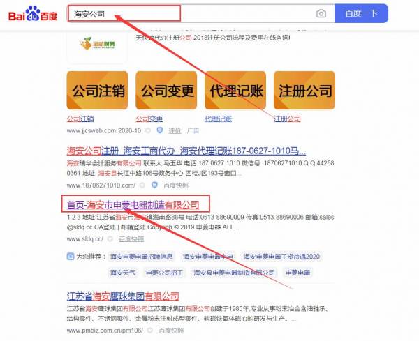 海安市申*電器制造有限公司網站優化最快上詞效果展示