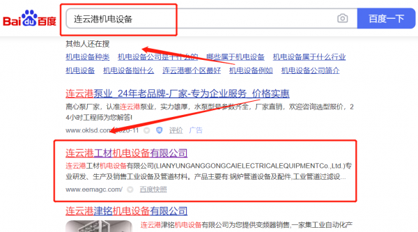 連云港工*機電設備有限公司SEO到首頁按天扣費