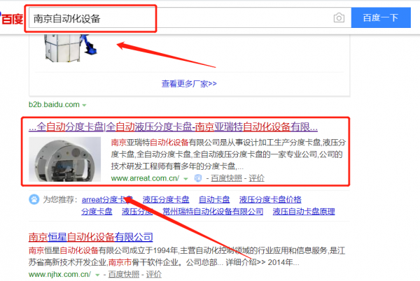 我們公司與南京亞瑞特自動化設備有限公司合作中,對這個公司所經營的自動化設備這個行業提供了關鍵詞搜索排名,與該公司的合作,更多的客戶讓我們公司為其提供關鍵詞搜索排名,通過每一次合作,我們公司不斷完善自己,同時希望合作伙伴在經營的路上越來越好。