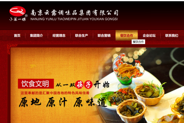 南京云露調味品有限公司成立于1998年5月,注冊資金3051萬元。是南京豐盛產業集團控股的子公司。公司下轄南京小菜一碟商貿有限公司和南京小菜一碟調味食品有限公司兩個全額子公司,銷售網絡遍布全國。南京小菜一碟商貿有限公司主要經營全國小菜一碟基地特色產品,并連鎖經營全國商貿有限公司,目前在北京、江蘇、安徽、重慶、廣東、山東、上海等10多個省市開拓分公司。南京小菜一碟調味食品有限公司主要開發、加盟全國各地特色小菜基地,并成立產品檢測中心,研發中心,連鎖經營小菜一碟各生產基地,目前小菜一碟在全國已經擁有“寧波雪菜、紹興梅干菜、蕭山蘿卜干、潮州酸菜、香港橄欖菜、湖南剁辣椒、涪陵榨菜、成都泡菜、揚州醬菜、如皋蘿卜條、巢湖乳黃瓜、馬鞍山茶干、大別山野生山瓜、九華山野生蕨菜等50多個生產基地,近200個風味獨特的小菜品種。小菜一碟商標的圖形是一只碟子上放著一雙筷子。我們中國人吃飯夾菜是用筷子的,因此小菜一碟品牌更具有中國味道。