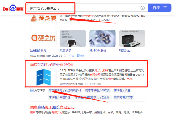 我們公司與南京商*電子股份有限公司合作中,對這個公司所經營的電子元器件這個行業提供了百度關鍵詞排名,與該公司的合作,更多的客戶讓我們公司為其提供百度快照排名,通過每一次合作,我們公司不斷完善自己,同時希望合作伙伴在經營的路上越來越好。