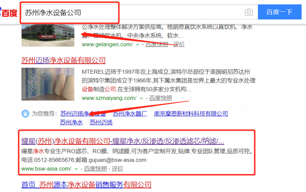 耀 星(蘇州)凈水設(shè)備有限公司選用我司企業(yè)凈水設(shè)備的網(wǎng)站優(yōu)化產(chǎn)品,其SEO關(guān)鍵詞有凈水設(shè)備。不管是PC、還是移動(dòng)端、微信或B2B行業(yè)平臺(tái),做到網(wǎng)絡(luò)推廣無(wú)死角,全方位覆蓋。根據(jù)用戶(hù)的意圖和行為數(shù)據(jù),精準(zhǔn)用戶(hù)畫(huà)像,識(shí)別每一位用戶(hù)真實(shí)需求及興趣愛(ài)好,實(shí)現(xiàn)最大化廣告效果。耀 星(蘇州)凈水設(shè)備有限公司成立于2013年,是經(jīng)蘇州市市場(chǎng)監(jiān)督管理局審核的有資質(zhì)的公司,其統(tǒng)一社會(huì)信用代碼:91320594084445698R。公司地址:江蘇省蘇州工業(yè)園區(qū)宏業(yè)路158號(hào)聯(lián)發(fā)工業(yè)園10號(hào)樓2、3樓。