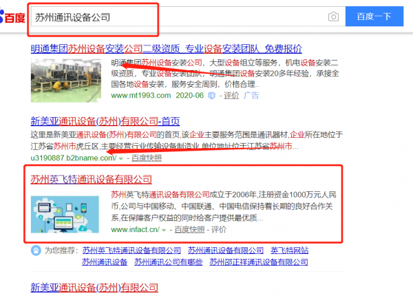 我們公司與蘇州*飛特通訊設備有限公司合作中,對這個公司所經營的通訊設備這個行業提供了百度快照排名,與該公司的合作,更多的客戶讓我們公司為其提供SEO推廣,通過每一次合作,我們公司不斷完善自己,同時希望合作伙伴在經營的路上越來越好。