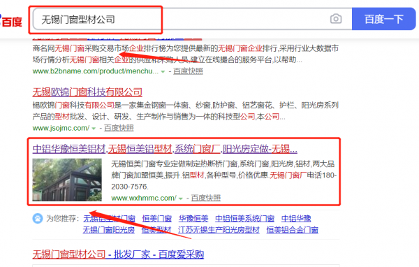 無錫*美門窗公司選用我司企業(yè)門窗型材的網站優(yōu)化產品,其SEO關鍵詞有門窗型材。搶占百度、360搜索、搜狗等搜索引擎首頁自然排名(PC端 + 手機端),高客流量導入,SEO推廣效果更突出。無錫*美門窗公司成立于2008年,是經無錫市市場監(jiān)督管理局審核的有資質的公司,其統(tǒng)一社會信用代碼:9132020**78343285T。公司地址:江蘇省無錫市人民中路88號825室。