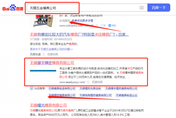 無錫耀*精密模具有限公司網站推廣排名效果展示