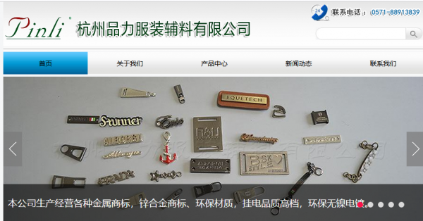 杭州品*服裝輔料有限公司網站建設制作設計案例欣賞