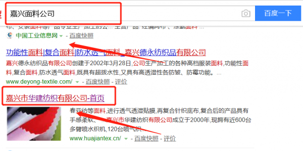 嘉興市華建紡織有限公司與本司簽約百度快照排名協議