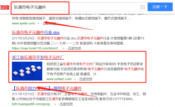 我們公司與浙江省樂清市宇發電子元件廠合作中,對這個公司所經營的電子元器件這個行業提供了百度快照排名,與該公司的合作,更多的客戶讓我們公司為其提供百度快照排名,通過每一次合作,我們公司不斷完善自己,同時希望合作伙伴在經營的路上越來越好。
