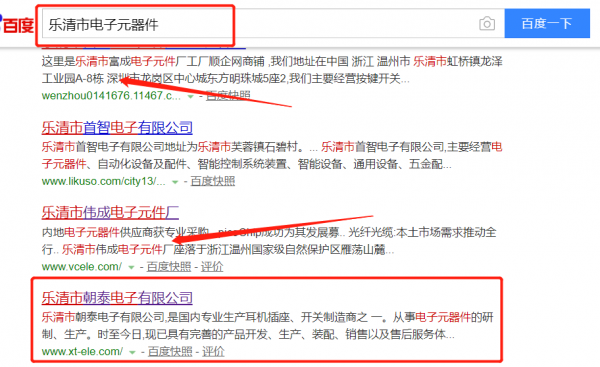 我們公司與樂清市朝泰電子有限公司合作中,對這個公司所經營的電子元器件這個行業提供了百度快照排名,與該公司的合作,更多的客戶讓我們公司為其提供百度快照排名,通過每一次合作,我們公司不斷完善自己,同時希望合作伙伴在經營的路上越來越好。