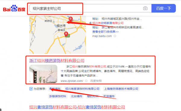 浙江紹興*然裝飾材料有限公司新站排名最快上詞效果展示