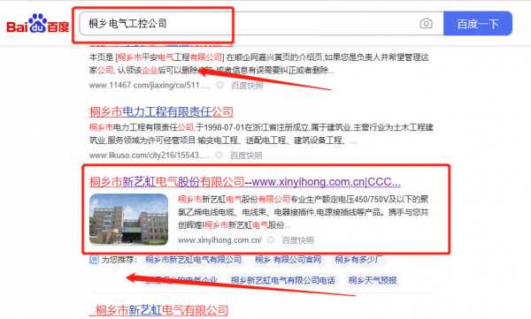 桐鄉市*藝虹電氣股份有限公司百度關鍵詞排名營銷+精準獲客