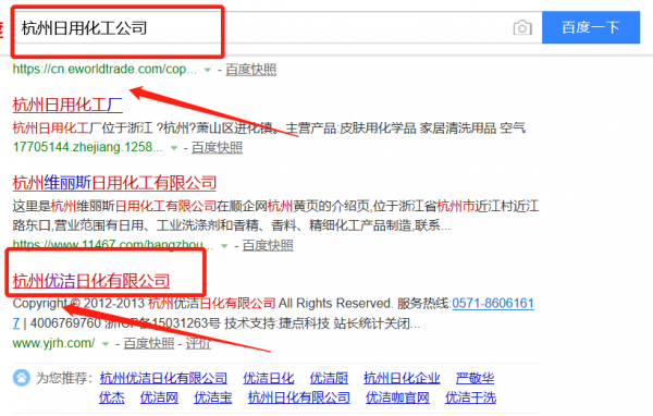 我們公司與杭州優潔日化有限公司合作中,對這個公司所經營的日用化工這個行業提供了百度快照排名,與該公司的合作,更多的客戶讓我們公司為其提供百度快照排名,通過每一次合作,我們公司不斷完善自己,同時希望合作伙伴在經營的路上越來越好。