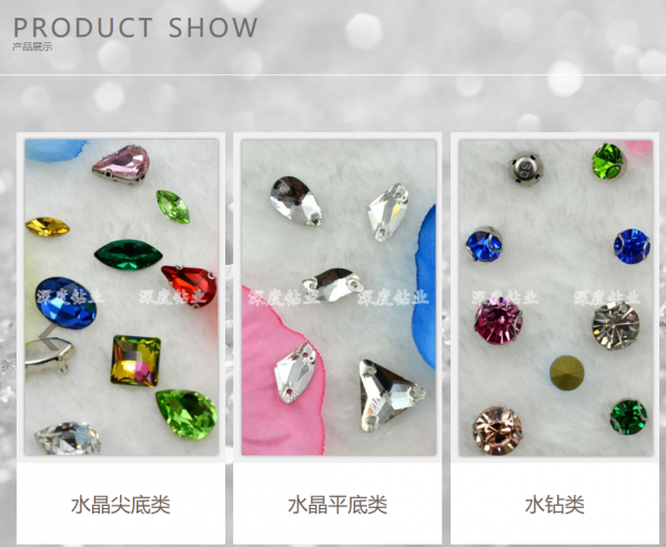 杭州深度服裝輔料有限公司,簡稱深度鉆業,成立于2008年,是一家專業致力于水晶生產制造、設計加工和銷售為一體的多元化企業。我們主要致力于為國內外中高檔品牌服裝、鞋冒客戶和廣大喜愛水晶飾品的終端消費者提供專業服務。主要產品有水鉆、水晶鉆、水晶飾品和掛件等。深度鉆業一直秉承“創新求引領,因為專業所以不凡”的發展理念,一直致力于產品和服務的雙重持續創新!截止目前,公司擁有生產研發、飾品設計和配套五金研發的三個專業創新團隊,以及擁有一個水晶生產工廠、一個五金生產工廠、三個組裝基地和覆蓋全國一線城市的四個銷售網點。
