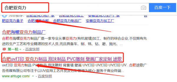 我們公司與合肥途歌廣告傳媒有限公司合作中,對這個公司所經營的亞克力這個行業提供了百度快照排名,與該公司的合作,更多的客戶讓我們公司為其提供百度快照排名,通過每一次合作,我們公司不斷完善自己,同時希望合作伙伴在經營的路上越來越好。