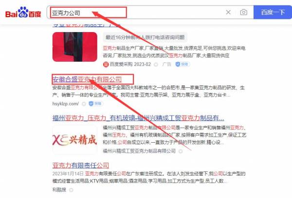 安徽合*亞克力有限公司快速排名效果展示