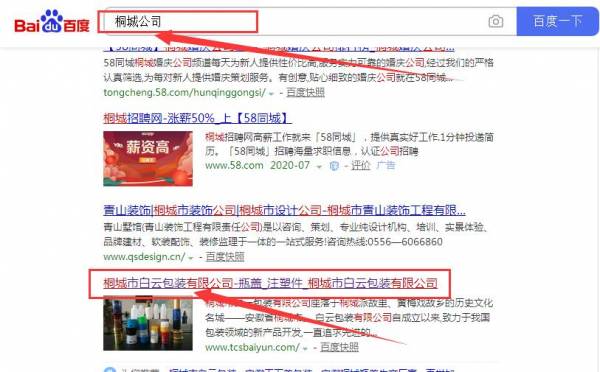 桐城市白*包裝有限公司與我司做快速排名項(xiàng)目