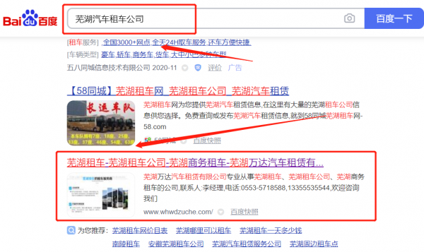 蕪湖萬*汽車租賃有限公司萬詞霸屏案例欣賞