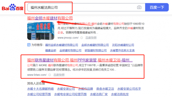 福州聯*星建材有限公司百度排名屏營銷+精準獲客