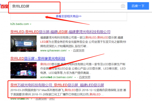 我們公司與泉州萬碩光電科技有限公司合作中,對這個公司所經營的LED屏這個行業提供了關鍵詞搜索排名,與該公司的合作,更多的客戶讓我們公司為其提供關鍵詞搜索排名,通過每一次合作,我們公司不斷完善自己,同時希望合作伙伴在經營的路上越來越好。