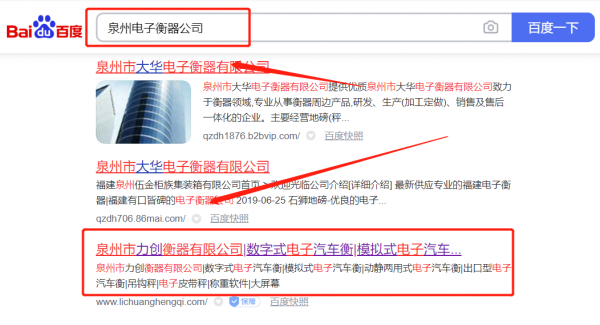 泉州市*創(chuàng)衡器有限公司關(guān)鍵詞排名排名效果展示